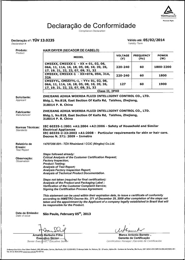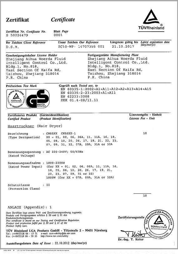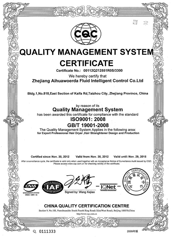 After years of development and sustained efforts,relies on product quality and conscientious and meticulous service,we’ve got high reputation from our customers,we implement ISO9001-2008 system,and our quality control standards are based on GS、CE、EMC.、LVD、CB、SAA、SASO、INMETRO、ETL、RoHS and Erp.