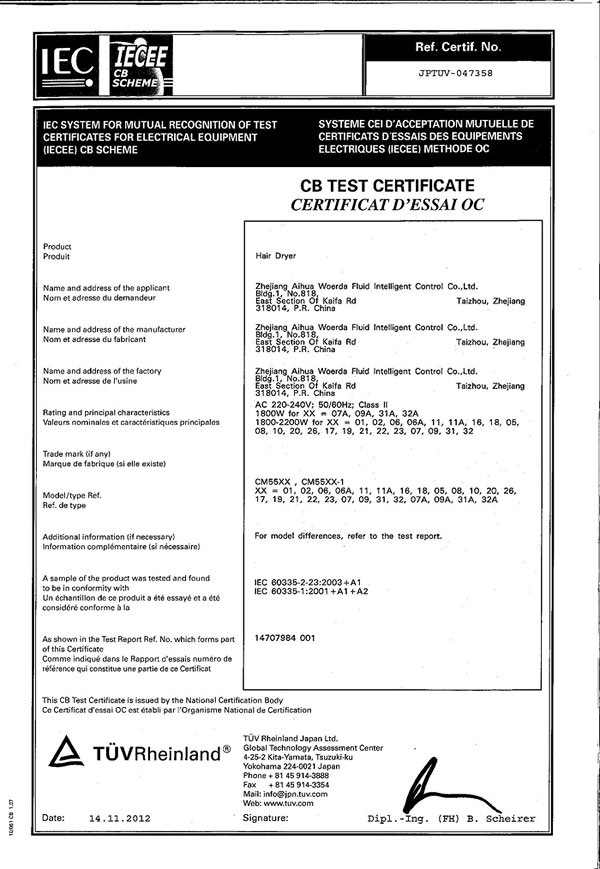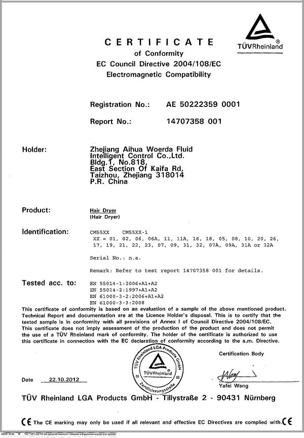 After years of development and sustained efforts,relies on product quality and conscientious and meticulous service,we’ve got high reputation from our customers,we implement ISO9001-2008 system,and our quality control standards are based on GS、CE、EMC.、LVD、CB、SAA、SASO、INMETRO、ETL、RoHS and Erp.